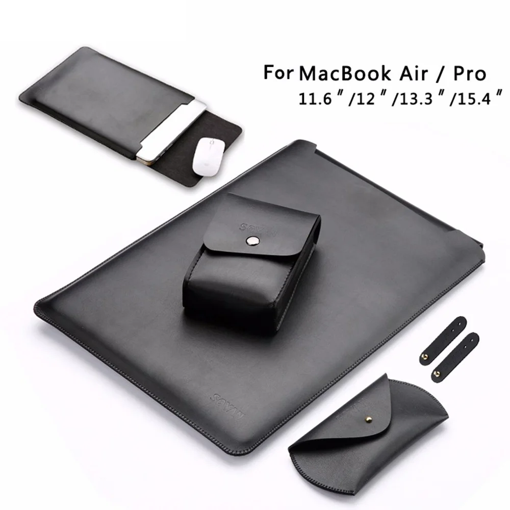 Good Offer for Hot Solid Laptop Sleeve Case Pouch Charger Bag Mouse Case 3pcs Cable Winder Leather Cover for Macbo